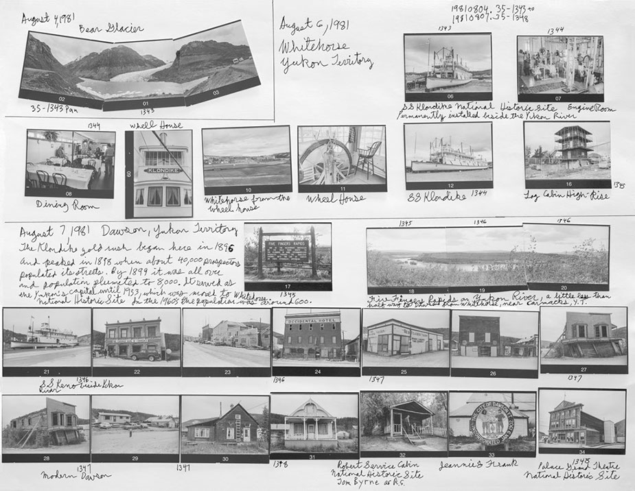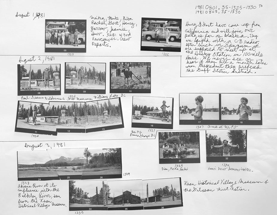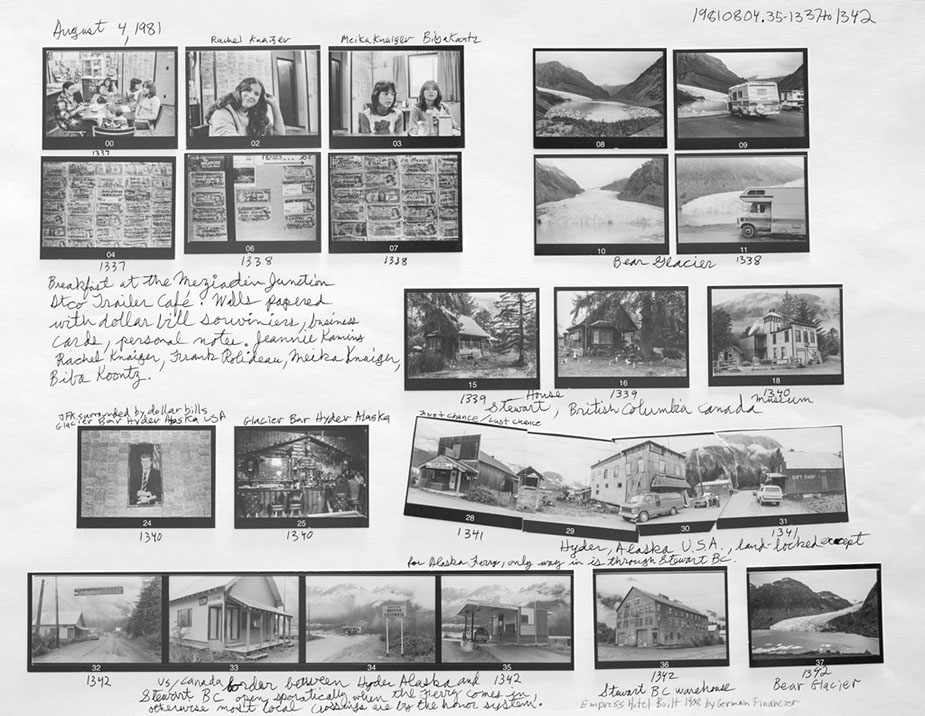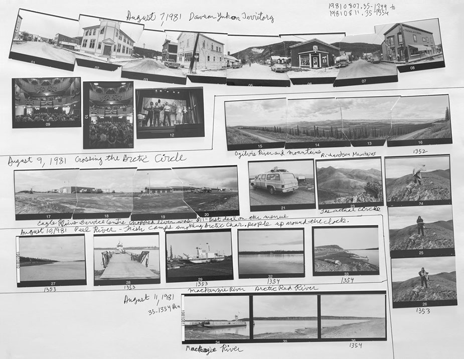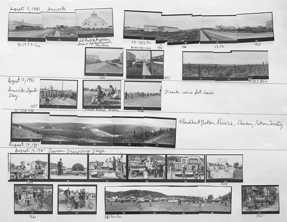 The exhibition at Truth And Beauty consisted of one classic framed panorama in the front window, two finished 20 x 24 inch framed prints, and two rows of six enlarged contact sheets and six edit worksheets from about half the images in the original North Pole Dig. The show was intended as a teaser viewing of the early stages of a book project recounting the first year of the Pancanadienne Gianthropological Survey, a ten year adventure in discovering the true meaning of Canada, its history and people.