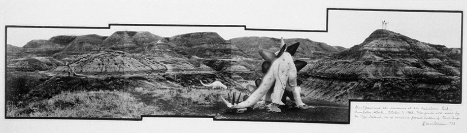Giant Jesus and the Dinosaurs at Prehistoric Park, Drumheller, Alberta, October 3, 1982. These Giants were made by Mr. Tigg Seland, one of Canada's foremost builders of Giant Things.