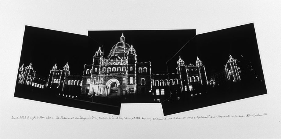 Giant Batch of light bulbs adorn the Parliament Building, Victoria, British Columbia, February 3, 1982. Question- How many politicians does it take to change a light bulb? Answer- None, they're all in the dark.
