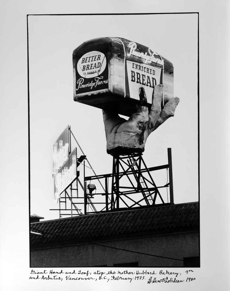 Giant Hand and Loaf atop the Mother Hubbard Bakery, Broadway & Arbutus, Vancouver, BC, February 1973.