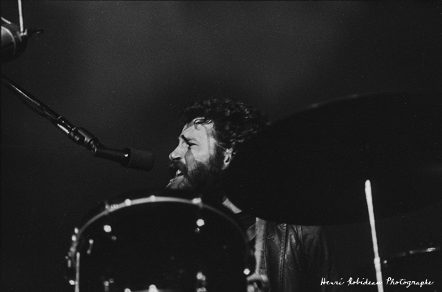 My job is on. I carefully focus, holding my camera steady in the sea of writhing bodies. I wait for Rick Danko’s face to emerge from behind the microphones. I wait for interesting gestures and expressions. I realize I better photograph Robbie Robertson first, just in case he doesn’t make it. Garth Hudson is hidden in the dark behind his poorly placed organ and Levon Helm can barely be seen in the jungle of his drum kit. My first roll of film runs out quickly. I reload amidst the jostling. Levon Helm comes out from behind the drums and I get some good side-by-sides with Rick Danko. Robbie Robertson is zoned out, turns from the audience and checks out the blobby light show, then wanders about the stage, still playing his parts the whole time on automatic pilot. I change my position and get a better line of sight on Richard Manuel at the keyboard. Then I run out of film. Not even one picture of Garth Hudson. Even so, I’m in heaven for the next couple of songs and then, whosh, it’s all over. The set lasts maybe thirty, forty minutes.
