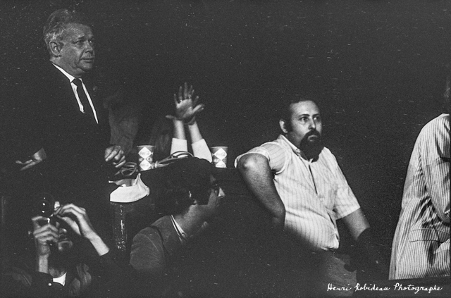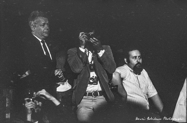 Inside, it’s pretty clear that things aren’t unfolding as they should and I ask what is going on but I’m shooed over to the klatch of journalists and photographers gathered stage-side. These guys, mostly guys, dressed in tatty suit and tie with Nagras and Leicas, are all older than me, standing around chain smoking and blabbing familiarly with each other. I’m thinking, wow, these are Life Magazine and Time Magazine and Rolling Stone and CBS and NBC and New York Times and the Post and the Trib and the Chron and the Brisbane Bugle and the Laney College me.