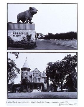 Henri Robideau's images in the exhibition include five double frame narratives and the series A Tourist's Guide To The Giant Things and Mattie Gunterman Historical Sites Of La Crosse, Wisconsin. All this work is now part of the permanent collection of the National Gallery Of Canada.